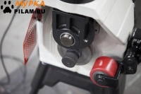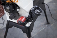 Станок оснащен гидравлическими тисками. На основной панели расположены: цветной сенсорный дисплей, с помощью которого можно задать программу и отслеживать процесс пиления, регулятор скорости опускания пилы и кнопка аварийного останова