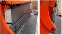 На станке установлен откидной защитный кожух для предотвращения попадания в вальцы посторонних предметов во время выполнения другой операции. Гибка на максимальный угол 90°. Гибка происходит по типу гибки на прессе – гибочными штампами (пуансон х матрица). Съемные сегменты пуансона позволяют производить отбортовку поддонов и коробов. Гильотина станка идеально режет металл до 1.0 мм.