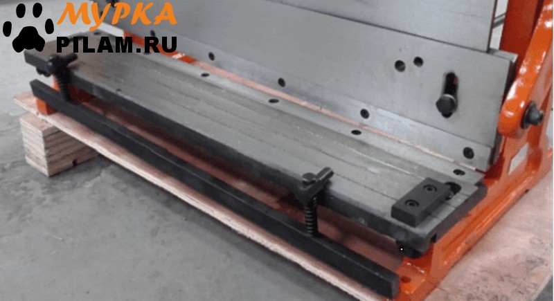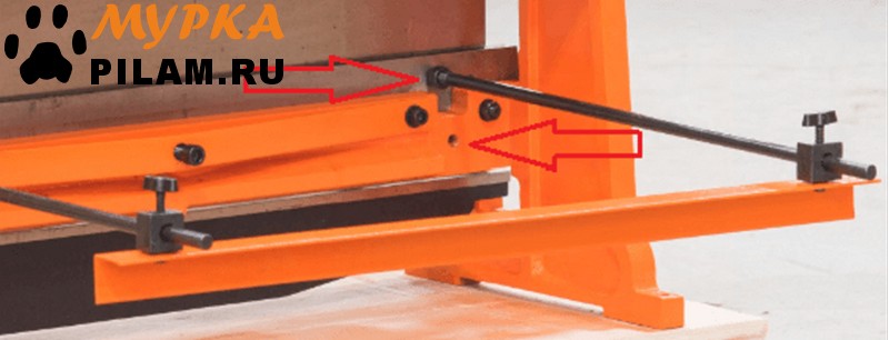 Задняя часть станка имеет ограничитель подачи листа, для резки листа на заданный размер. Для снижения усилия оператора во время работы станок оснащен удобными рукоятями большой длины с противоскользящими наконечниками.