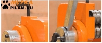Комбинирование функций резки, гибки и проката (вальцевания). Идеальная комбинация для обработки листового металла толщиной до 1,0 мм. Вальцы с диаметром 39мм. Вальцы имеют трёхваловую конструкцию, верхний вал консольно отводится в сторону для быстрого съёма обечайки. Точно полированные вальцы из углеродистой стали. На вальцах станка расположены желоба для гибки арматуры.