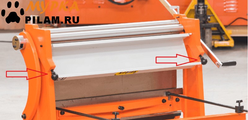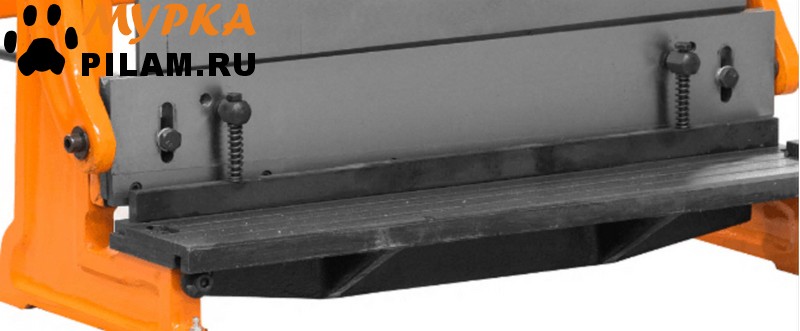 Задняя часть станка имеет ограничитель подачи листа, для резки листа на заданный размер. Для снижения усилия оператора во время работы станок оснащен удобными рукоятями большой длины с противоскользящими наконечниками.