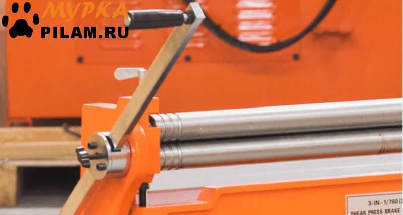 На станке установлен откидной защитный кожух для предотвращения попадания в вальцы посторонних предметов во время выполнения другой операции. Гибка на максимальный угол 90°. Гибка происходит по типу гибки на прессе – гибочными штампами (пуансон х матрица). Съемные сегменты пуансона позволяют производить отбортовку поддонов и коробов. Гильотина станка идеально режет металл до 1.0 мм.