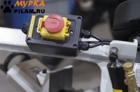 - На станках с гидроразгрузкой управление и процесс резки (запуск пилы – опускание рамы – остановка пилы) происходит за счёт запуска двигателя и регулировки гидроцилиндра. Гидроцилиндр имеет переключатель вкл./выкл. гидравлической системы и плавную регулировку опускания рамы верхним маховиком на дроссельном клапане.