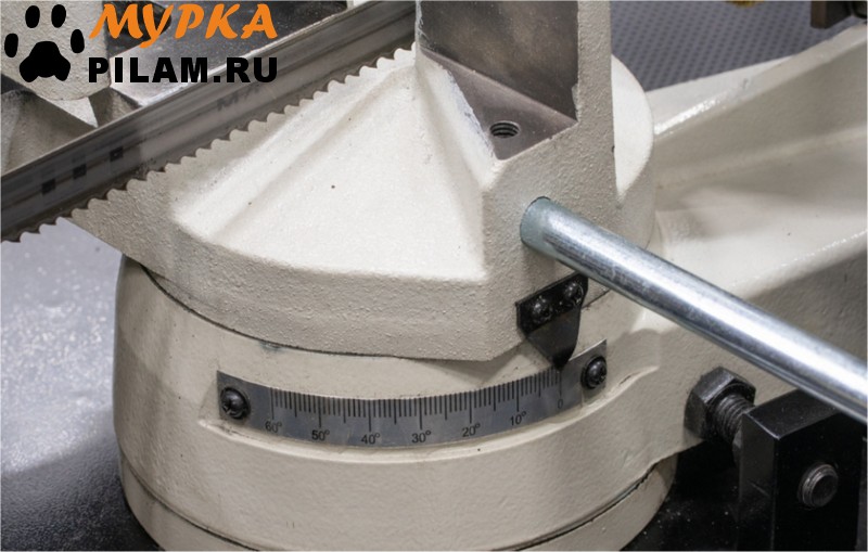 В рабочей зоне резания полотно точно ведется двумя направляющими головками. Станок европейского образца с возможностью поворота корпуса пилы от 0° до +60°, предназначен для пиления заготовок, под различными углами и при частой смене угла пила.