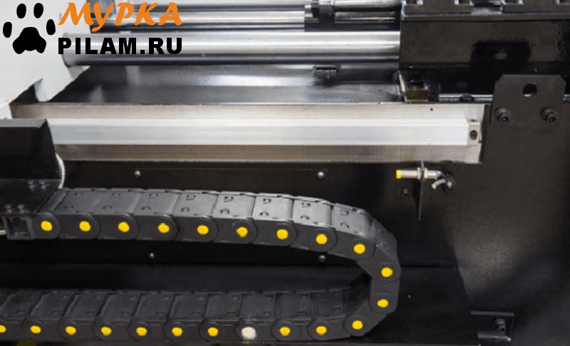 - Длина подачи заготовки контролируется автоматически c ЧПУ (СNC), движение происходит по линейным направляющим гарантирующим точность подачи.