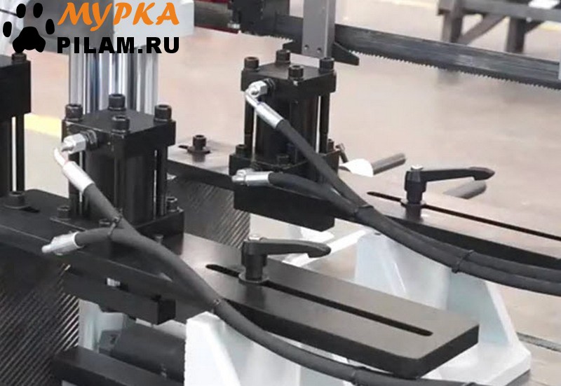 - Гидравлические тиски стационарные (тиски фиксации заготовки в зоне резания) и гидравлические тиски подающие (тиски подачи заготовок в зону резки)