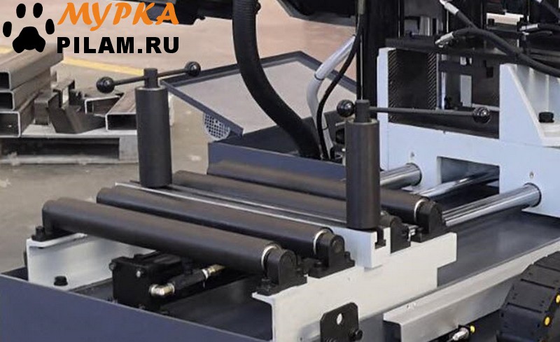 На автоматических станках возможна работа как в ручном режиме, когда каждая операция выполняется вручную посредством нажатия соответствующей кнопки, так и в автоматическом режиме, когда станок выполняет весь цикл резания (зажим заготовки – подвод заготовки – запуск пилы – опускание рамы – остановка пилы – подъем рамы – отжим тисков). В последнем случае оператор должен лишь обеспечить подачу заготовок, предварительно настроить концевой ограничитель на необходимую длину получаемых заготовок и запустить цикл пиления кнопкой «Пуск».