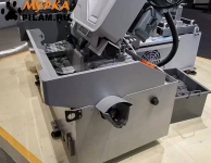 Станок оснащен гидравлическими тисками. На основной панели расположены: цветной сенсорный дисплей, с помощью которого можно задать программу и отслеживать процесс пиления, регулятор скорости опускания пилы и кнопка аварийного останова