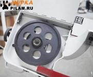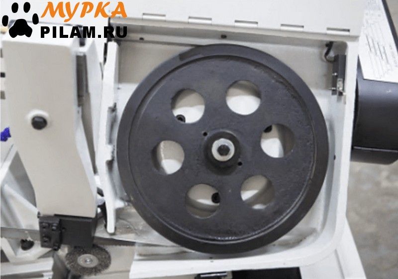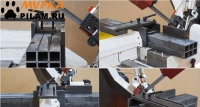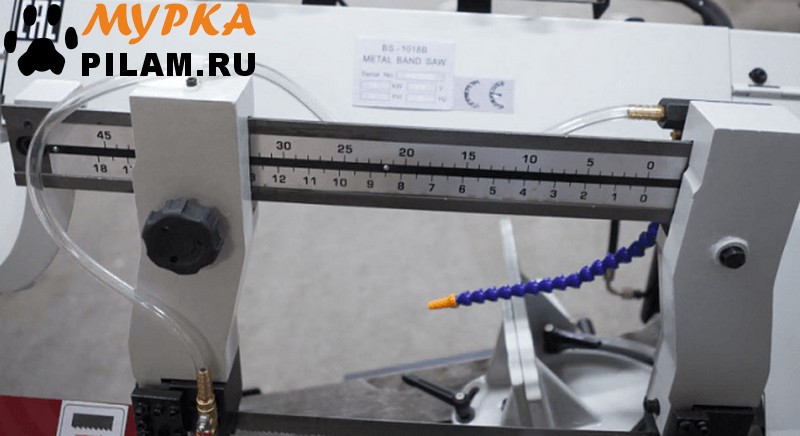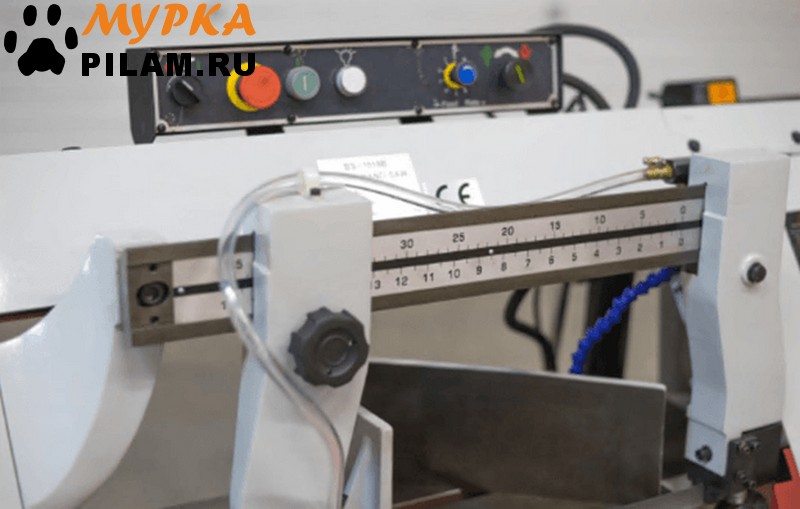 В рабочей зоне резания полотно точно ведется двумя направляющими головками. Станок имеет неподвижные тиски и поворотный механизм рамы, для пиления под углом необходимо изменить положение рамы относительно неподвижных тисков. Высота полотна 27мм позволяет пилить c высокой точностью и параллельностью полые и профильные заготовки под различными углами, в том числе и сплошные заготовки. Расстояние от пола до тисков составляет 580 мм.