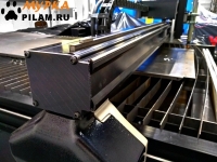 • В данном трехкоординатном станке плазменной резки используются цилиндрические направляющие, для обеспечения баланса между качеством линейных перемещений по координатам и стоимости станка.