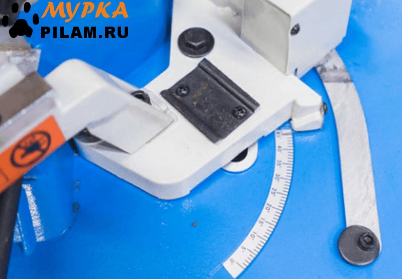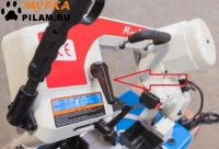 - Скорость пильной ленты - 45метр/мин. Рычаг фиксации направляющей.