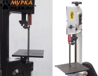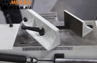 - Пильную раму возможно установить в вертикальном положении - для резки небольших изделий из дерева, пластмассы и других заготовок из мягких материалов (для которых не требуется фиксация в тисках во время пиления) при этом станок обязательно должен крепиться к полу. В стандартной комплектации имеется небольшой стол для ручной подачи заготовок, который крепится к раме в вертикально