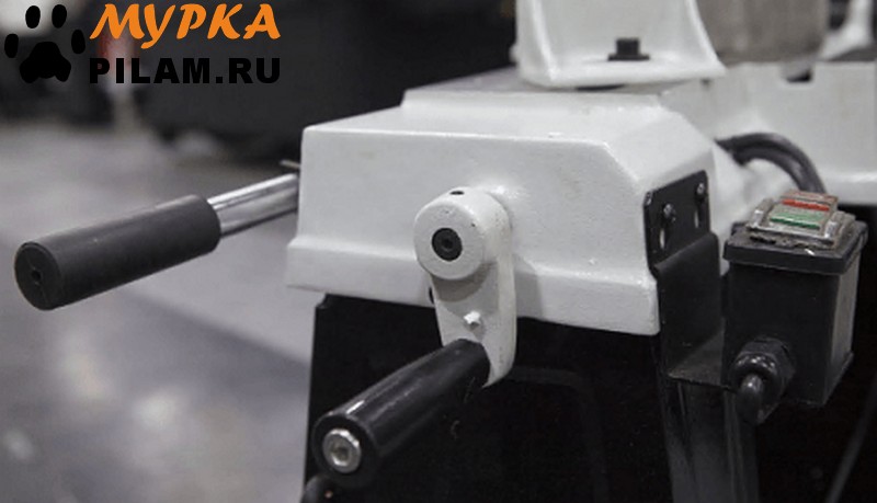 - Рычаг натяжения рамы станка и маховик вращения тисков