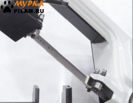 Режущий инструмент – бесконечная сварная ленточная пила, размером 20х0,9х1735 мм. Данная модель оснащена стационарными тисками, для резки под углом, поворачивается рама, а не заготовка. Зажим заготовки осуществляется тисками вручную, за счет вращения маховика, подача заготовки - также вручную.