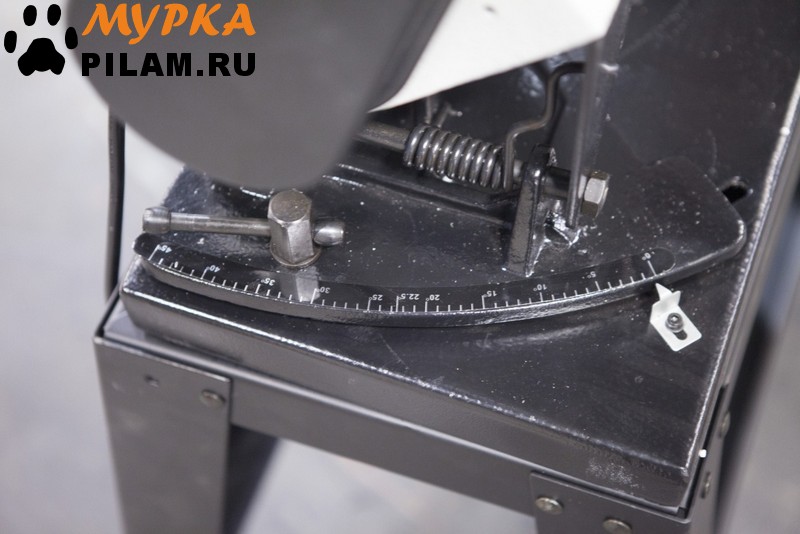 Станок с возможностью поворота корпуса пилы от 0° до +45°, предназначен для пиления заготовок, под различными углами и при частой смене угла пила. Режущий инструмент – бесконечная сварная ленточная пила, размером 13х0,65х1300 мм.
