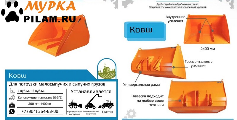 Ковш общего назначения усиленный, устанавливается на фронтальные и телескопические погрузчики, идеально подходят для выполнения погрузочных работ, расчистки территории и прочих манипуляций, связанных с перемещением сыпучих материалов.