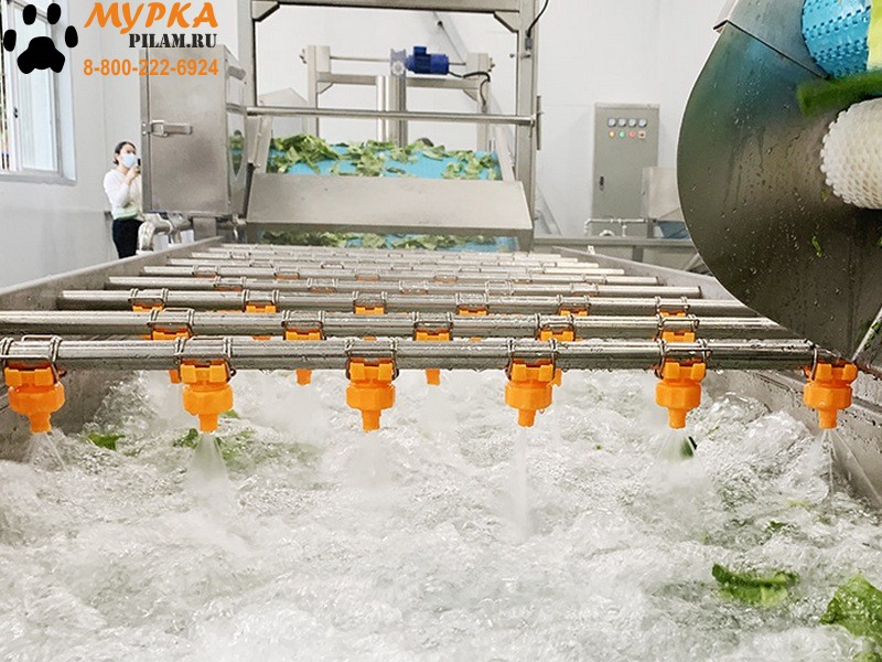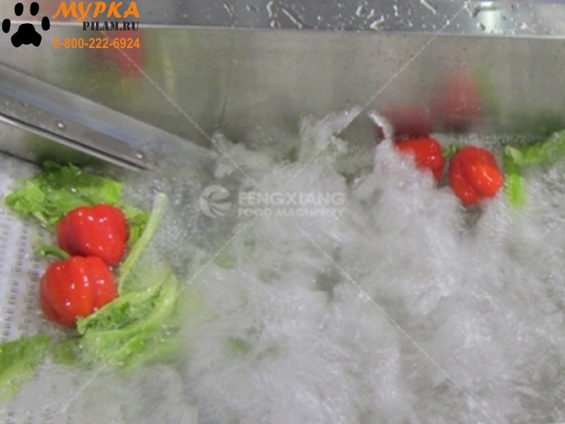• Станок оснащен подъемным конвейером, на котором овощи повторно моются распылителем;