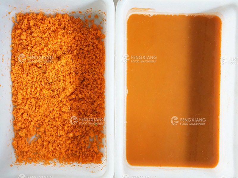 The machine can be used to squeeze pineapples, apples, pears, grapes, pomegranates, oranges, tomatoes, ginger, garlic, carrots, celery, etc. After the products arrive at the receiver, they are ground with an auger, forced through a filter and separated into liquid and waste. The output is a dry cake and juice.