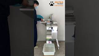 Легко справляется с нарезкой длинными полосками лук, чеснок, лук-порей, сельдерей, капусту, китайскую капусту и т. д. Скорость конвейерной ленты и режущего ножа можно регулировать с помощью преобразователя частоты, чтобы регулировать длину нарезанных овощей.