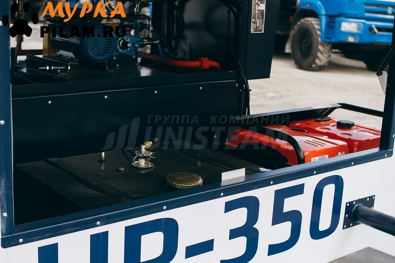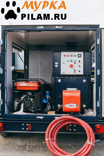 Основой установки служит мощный котел, обеспечивающий максимальное давление и производительность. Производительность парогенератора измеряется в кубах пара в минуту. Специальной защитой предусмотрена надежность работы при любых условиях. Для удобства водителя предусмотрено спальное место, что делает работу на дальних маршрутах более комфортной. Установлены системы защиты двигателя и КМУ, обеспечивающие долговечность эксплуатации.