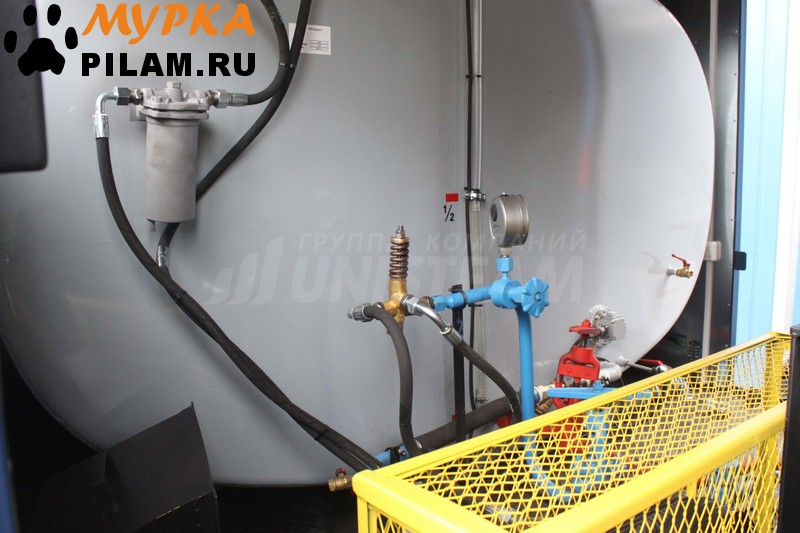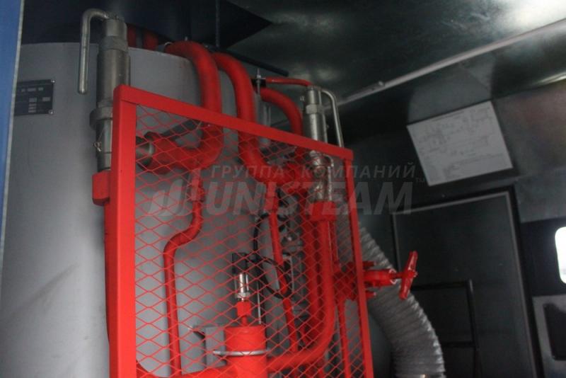 Основой установки служит мощный котел, обеспечивающий максимальное давление и производительность. Производительность парогенератора измеряется в кубах пара в минуту. Специальной защитой предусмотрена надежность работы при любых условиях. Для удобства водителя предусмотрено спальное место, что делает работу на дальних маршрутах более комфортной. Установлены системы защиты двигателя и КМУ, обеспечивающие долговечность эксплуатации.