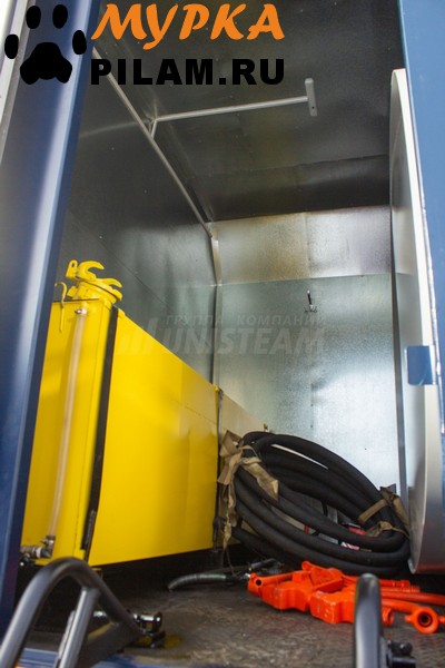 Основой установки служит мощный котел, обеспечивающий максимальное давление и производительность. Производительность парогенератора измеряется в кубах пара в минуту. Специальной защитой предусмотрена надежность работы при любых условиях. Для удобства водителя предусмотрено спальное место, что делает работу на дальних маршрутах более комфортной. Установлены системы защиты двигателя и КМУ, обеспечивающие долговечность эксплуатации.