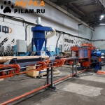 Далее происходит распиловка тонкими горизонтальными пильными дисками на заданную толщину досок, которая регулируется с помощью проставочных колец.