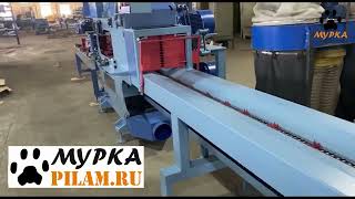 Брусующий круглопильный цепной станок - предназначен для продольной распиловки круглых лесоматериалов (бревен) с целью получения бруса (лафета), необрезной доски и горбыля. Станок может устанавливаться как отдельное оборудование, так и в составе лесопильной линии. Установленный в технологической линии вместе с разобщителем бревен и транспортерами, станок характеризуется высокой производительностью распила.