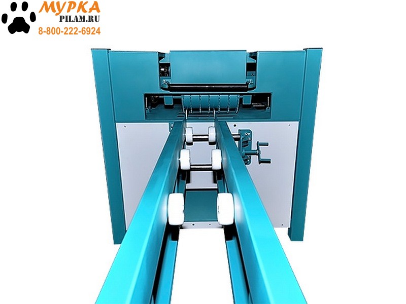 - Характерной особенностью делительного узла является то, что в базовой комплектации он имеет одну приводную ребуху на входе в станок. При непрерывном пилении горбыльной доски стык в стык процесс происходит равномерно. Если в процессе пиления есть перерыв в подаче заготовок, то на конце доски может получиться неравномерный запил, из-за того, что последние 300 мм этой заготовки приходится вытягивать из станка вручную. Чтобы избежать этой проблемы существует опция в виде дополнительной ребухи на выходе из делительного узла. Особенно, если предполагается использование станка СМ-500 самостоятельно, отдельно от линии.