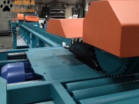 - Характерной особенностью делительного узла является то, что в базовой комплектации он имеет одну приводную ребуху на входе в станок. При непрерывном пилении горбыльной доски стык в стык процесс происходит равномерно. Если в процессе пиления есть перерыв в подаче заготовок, то на конце доски может получиться неравномерный запил, из-за того, что последние 300 мм этой заготовки приходится вытягивать из станка вручную. Чтобы избежать этой проблемы существует опция в виде дополнительной ребухи на выходе из делительного узла. Особенно, если предполагается использование станка СМ-500 самостоятельно, отдельно от линии.