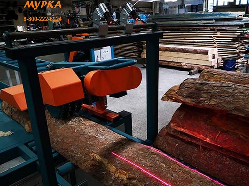 Отличительной особенностью линии является расположение кромкообрезного пильного узла на достаточном расстоянии от делительного узла.