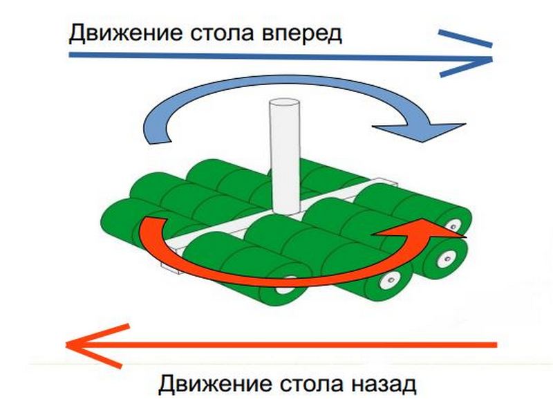 8) Осевое вращение ротора осуществляется в двух направлениях для движения стола вперед и назад.